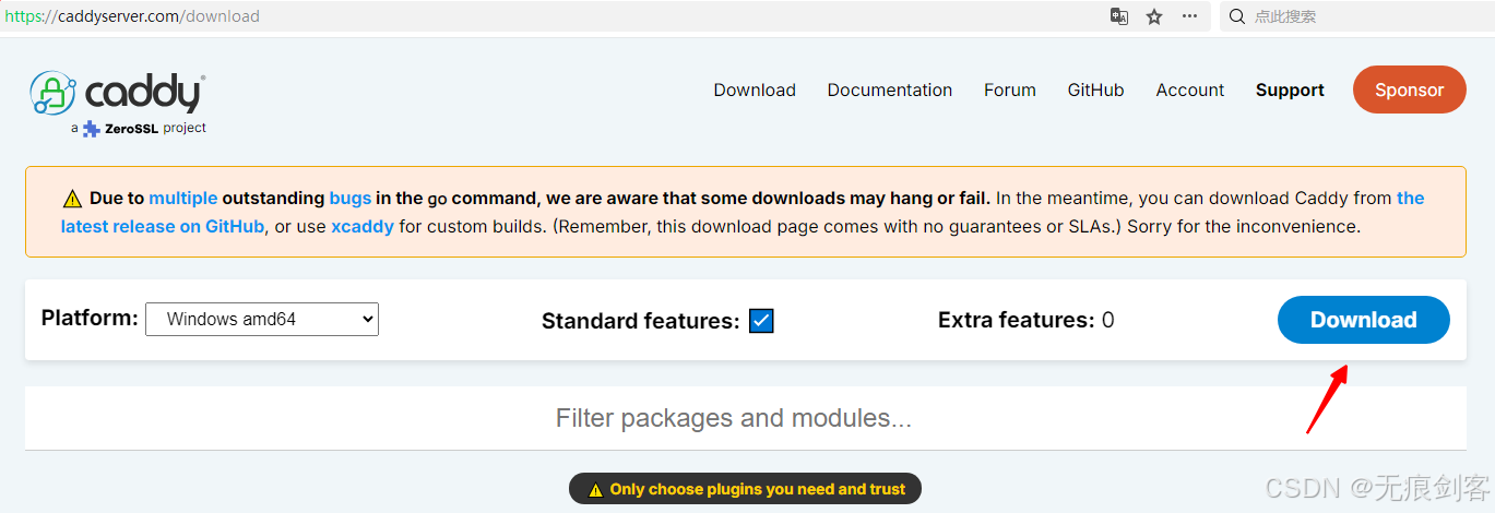 下载caddy程序(Window平台) caddy官网下载链接:https://caddyserver.com/download