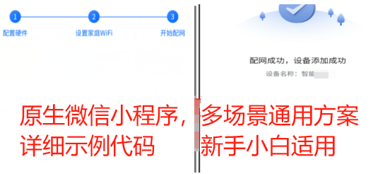 在微信小程序项目开发中,微信小程序AP配网和AK配网教程+完整示例源码,物联网智能设备进入配网模式后连接wifi(WIFI名称以及密码)UDP连接传输信息,当配网成功后自动断开退出,用户自定义配置设备连接信息,整体流程记录+数据可上传到服务器(非必要,可用于统计等用途),物联网智能设备AP配网和AK配网详细教程!