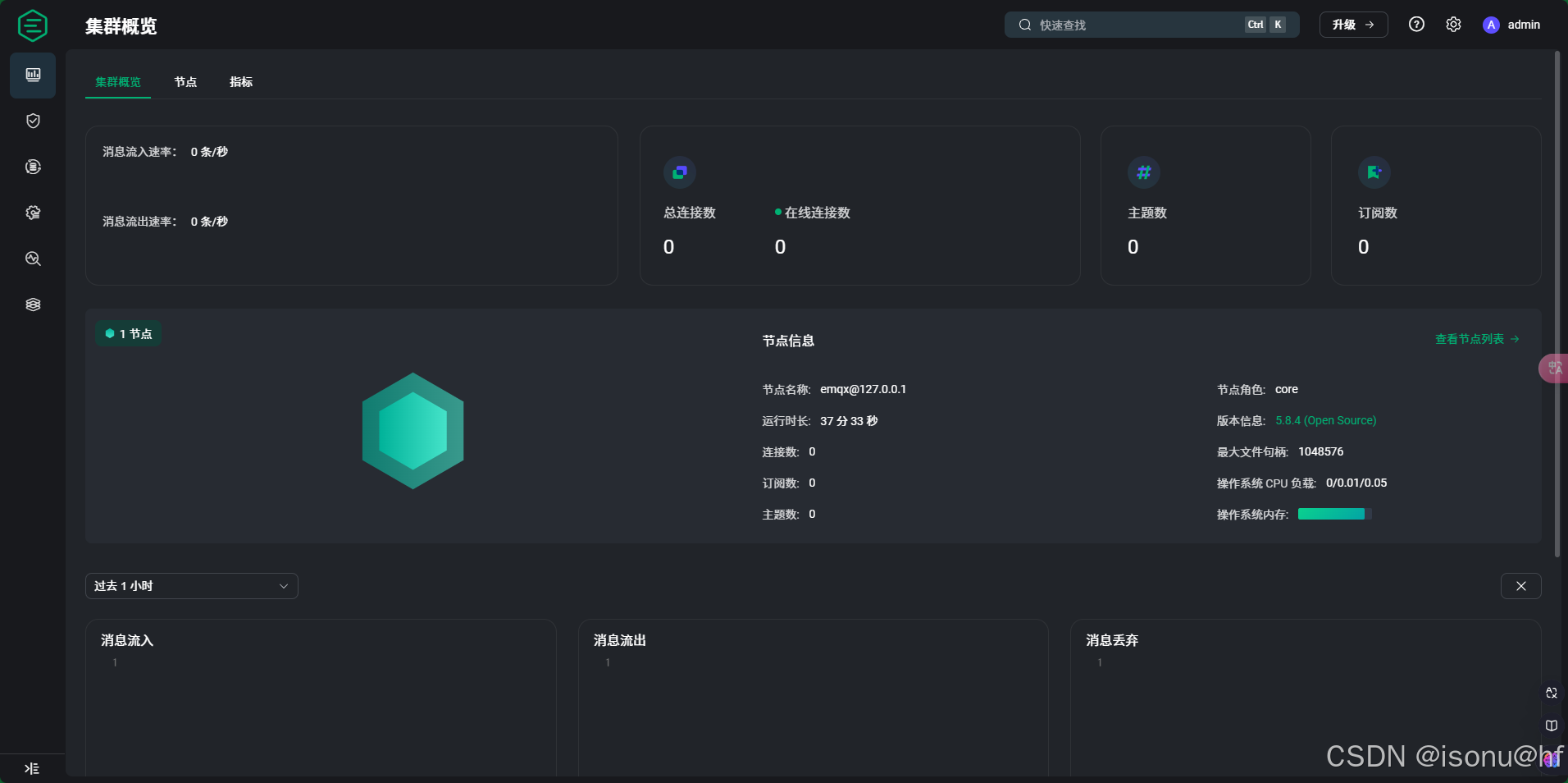 登录进来之后显示这样的界面,显示的是所有连接的信息及emqx的配置,可以随便点点熟悉一下emqx服务器的功能