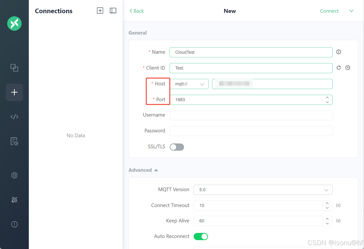接下来需要下载一个用于建立客户端与服务器连接的工具,我选用的是MQTTX,可以取官网自己下一个,下好以后创建一个客户端