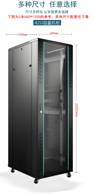 答:42U是高2米、宽0.6米和深0.8米服务器机柜,也可能是2米、宽0.6米和深0.96米服务器机柜;