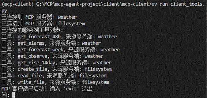 PowerShell cd client cd mcp-client uv venv .venv\\Scripts\\activate uv run client_tools.py |
