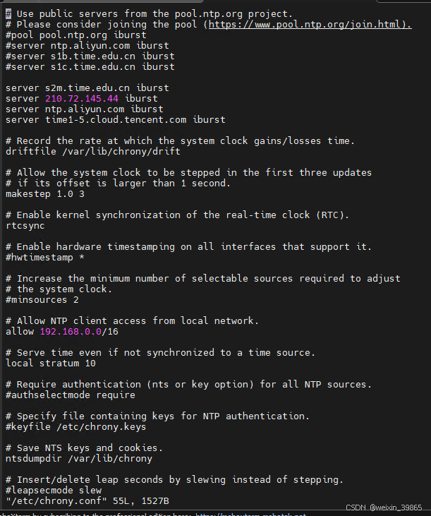 客户端配置只需要将ip,修改为刚刚部署的ntp服务器ip即可,配置的数量不限制。