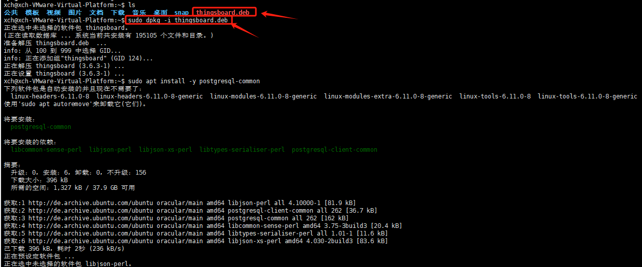 将 ThingsBoard 安装为服务:(要先进入到.deb的路径下)