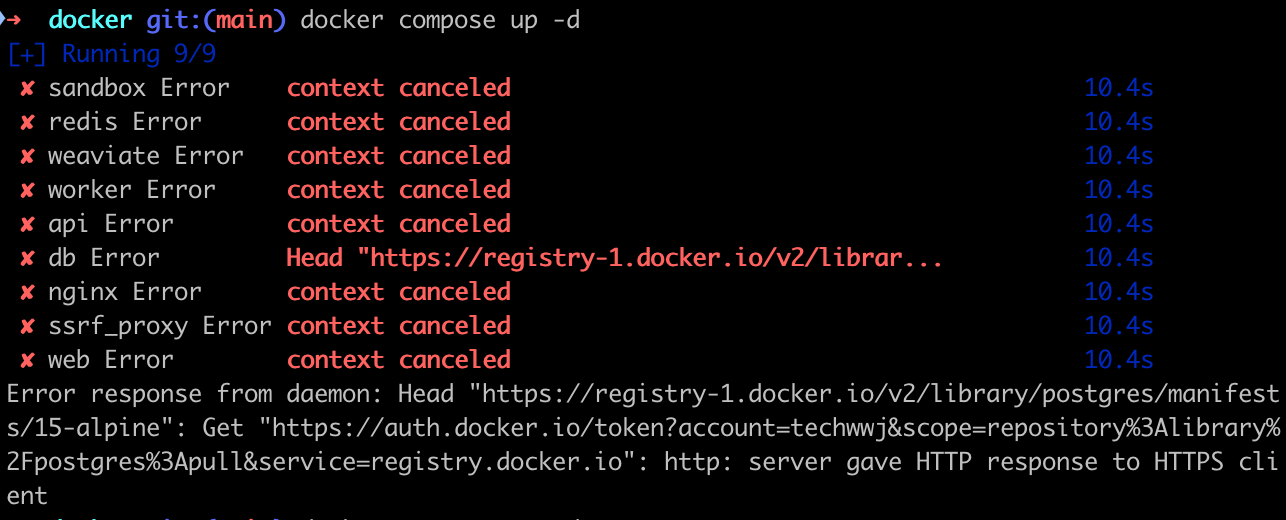 假设遇到以下问题,可以在前面我们安装的Docker Desktop设置里面配置镜像: