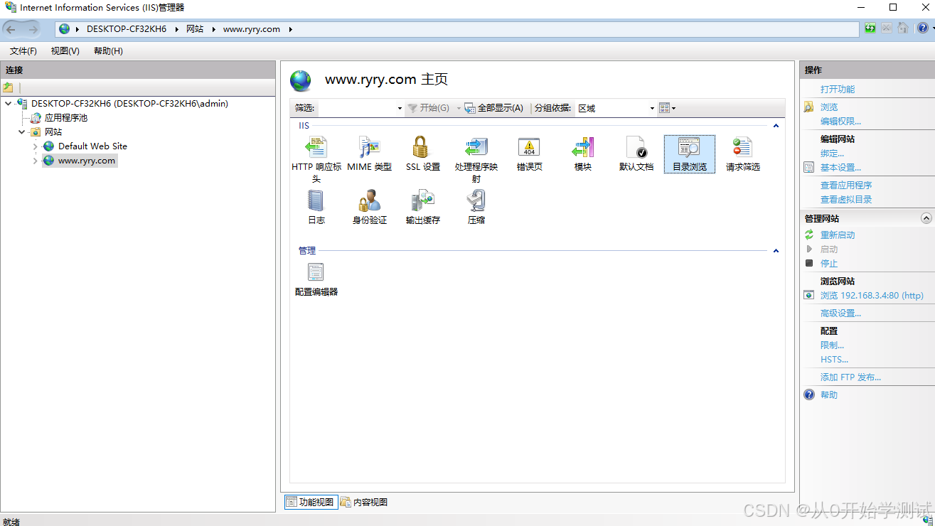 (6)配置网站参数 ,点击目录浏览进行设置浏览目录文件时的权限 ;