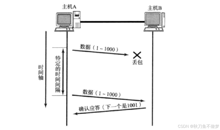 超时判断:如果在设定的超时值内,发送方没有收到 ACK,它就会认为数据包丢失,并重新发送该数据包。