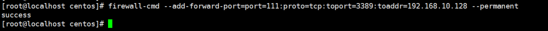 firewall-cmd –add-forward-port=port=111:proto=tcp:toport=3389:toaddr=192.168.10.128 –permanent