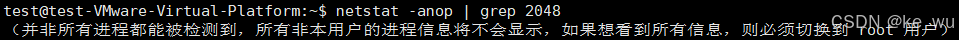 先在ubuntu系统中输入netstat -anop | grep 2048,会显示以下信息