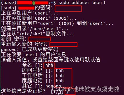 使用命令 sudo cat /etc/group 会发现 adduser 命令会自动创建一个同名的用户组。并且,在/home下产生[username]文件。