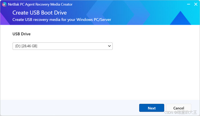 要为 Windows 计算机/服务器创建 USB 启动盘,请执行以下步骤: