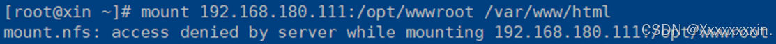 提示服务器192.168.100.111拒绝访问:“mount.nfs: access denied by server while mounting 192.168.180.111:/opt/wwwroot”