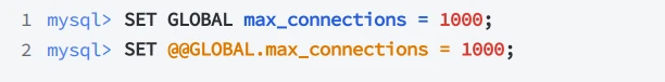 mysql> SET PERSIST max_connections = 1000;