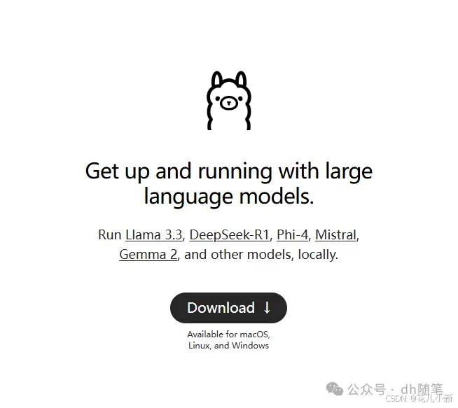 要在本地运行 DeepSeek,我们需要使用 Ollama——一个开源的本地大模型运行工具。 首先,访问 Ollama官网 下载该工具。官网提供了针对不同操作系统的安装包,用户只需选择适合自己电脑的版本即可。在本例中,我们选择下载适用于 Windows 操作系统的版本。