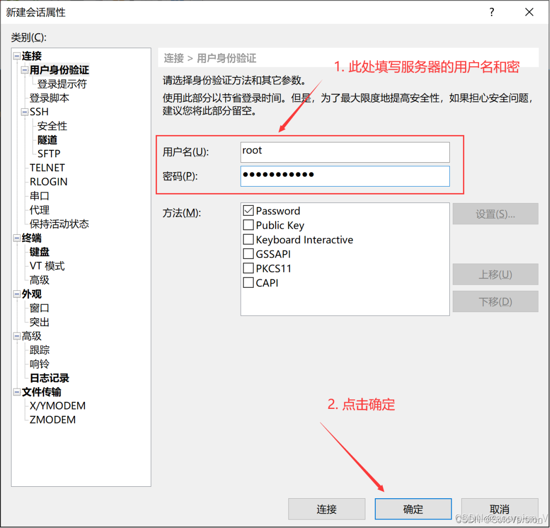 2.4 填写服务器的用户名和密码,之后点击“确定”