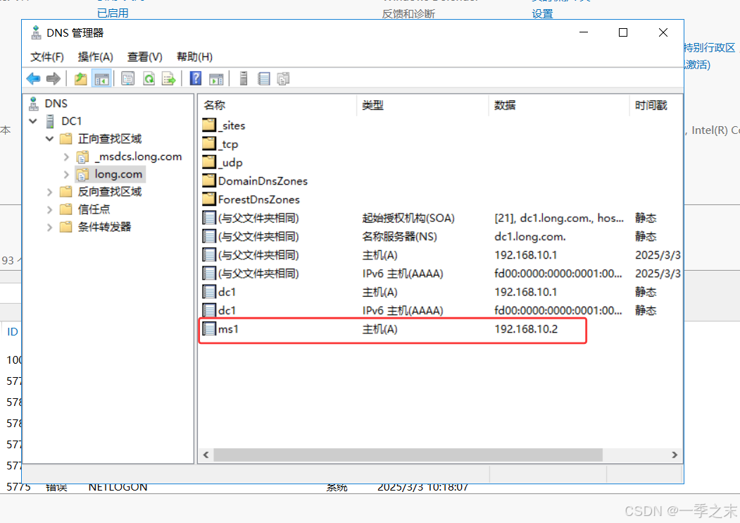 - 正向解析:通过域名查IP地址(如输入ms1.long.com→得到192.0.2.1)。