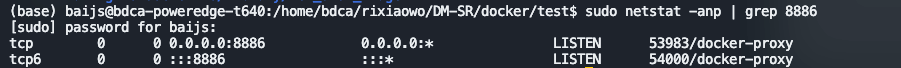 然后我可以看到进程号,以及是docker的服务占用了ipv4/ipv6协议下的8886端口