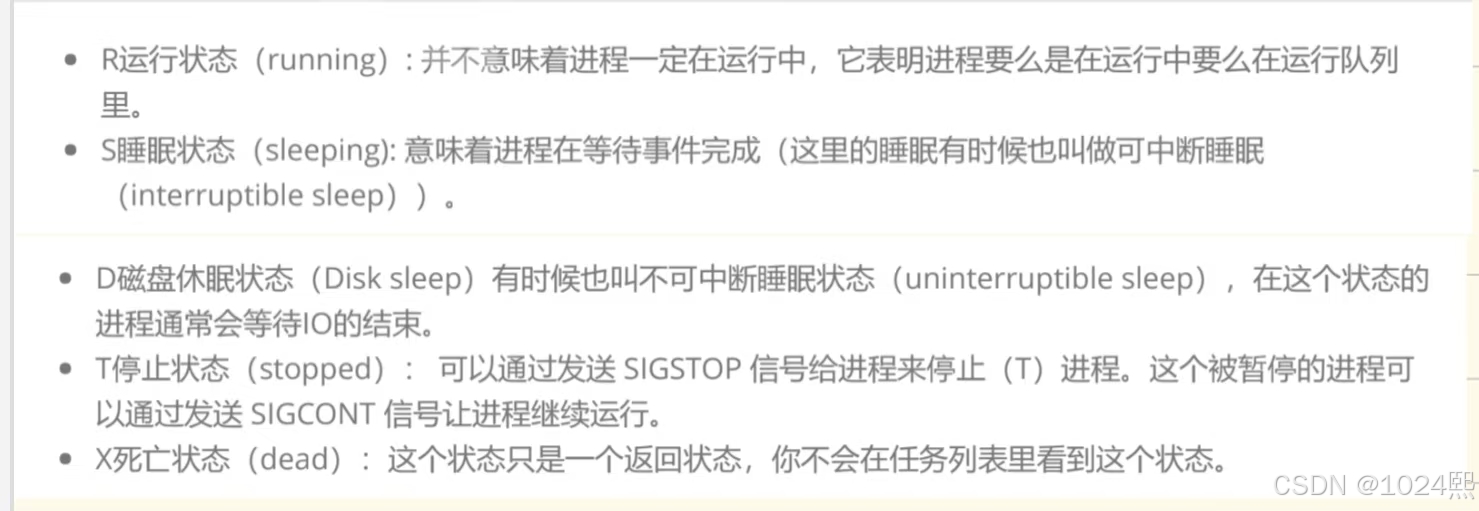 以下是Linux中的具体进程状态