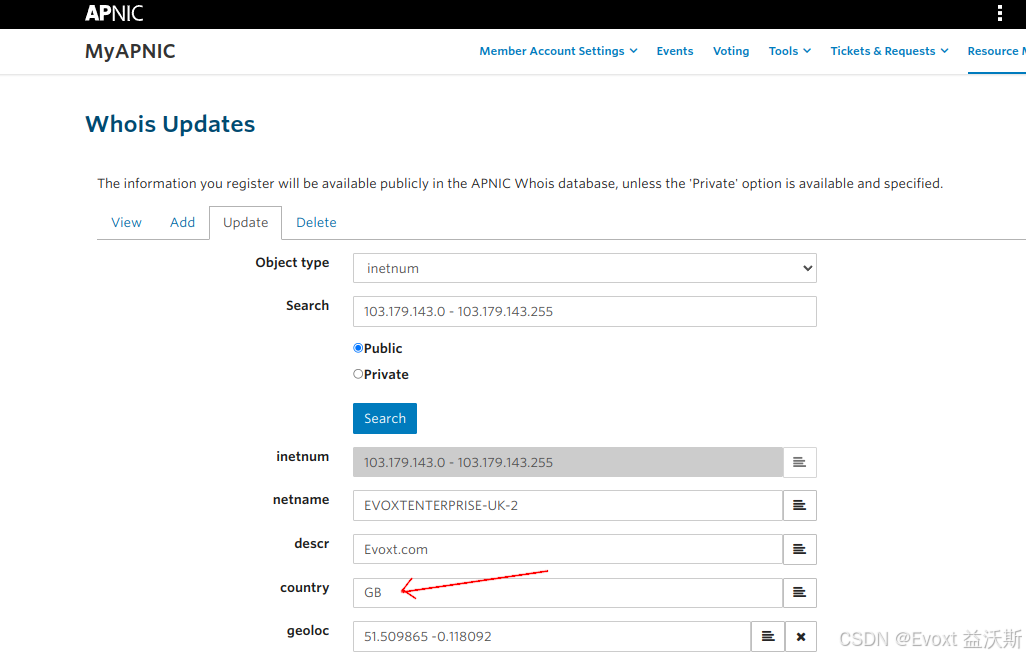 一些附加点: – 一些客户指出这是不对的,您应该从IP地址块的whois中获取此信息以确定这是否是“原始IP”。 这是不正确的,BGP.HE.NET 显示的特定 IP 块的 whois 信息将与提供商在 RIR 上设置的信息相同,这就是提供商配置地理定位的方式。