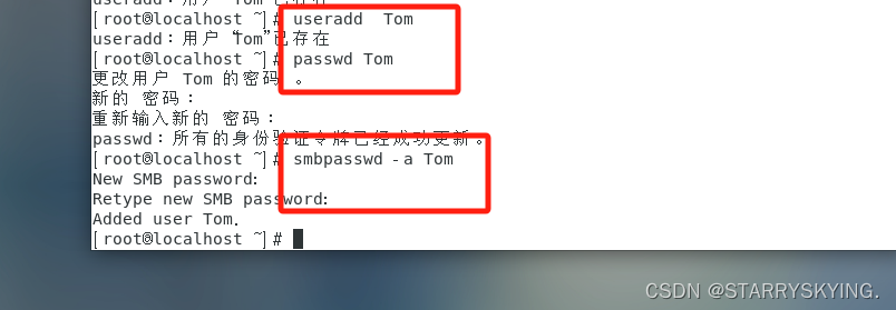 创建完成之后我们使用下方命令在samba服务中创建账号