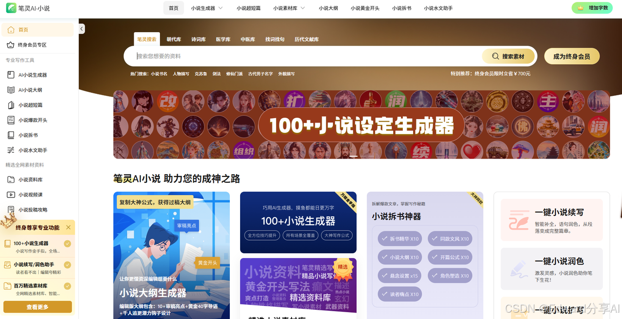 这个软件用来提升工作效率还是不错的,而且我发现它还有论文辅助功能和写小说功能,学生党可以码住收藏一下,里面写小说板块功能也挺丰富的,看得我这种小说新手也想试试写小说搞搞副业了。