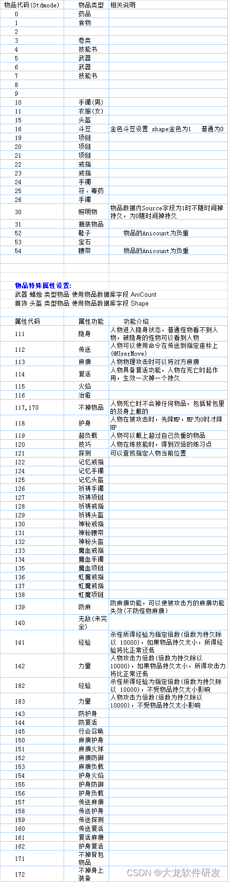 注意事项:普通老的物品数据库的Need及NeedLevel字段,不支持超过65535数字
