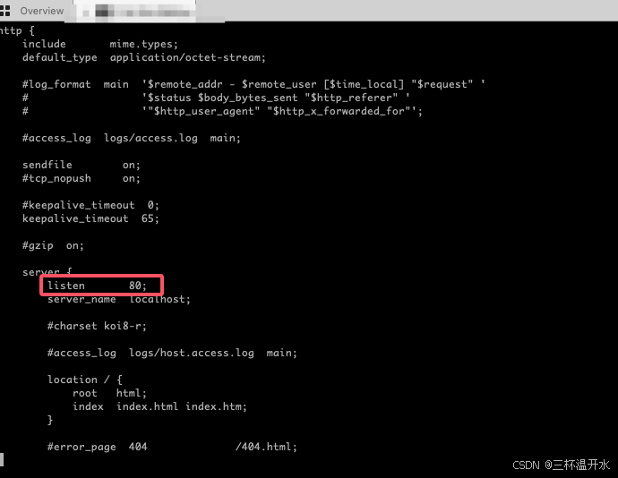 如果是配置自己的项目,可以修改成如:8080 端口,配置一下跨域,就在 server{} 中配置即可