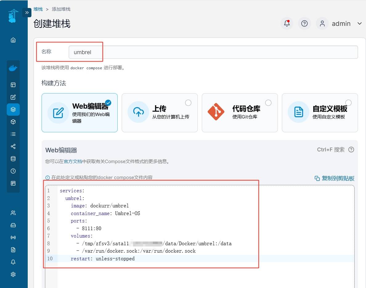 🔺完成准备工作之后打开Portainer,选择“堆栈–添加堆栈”。