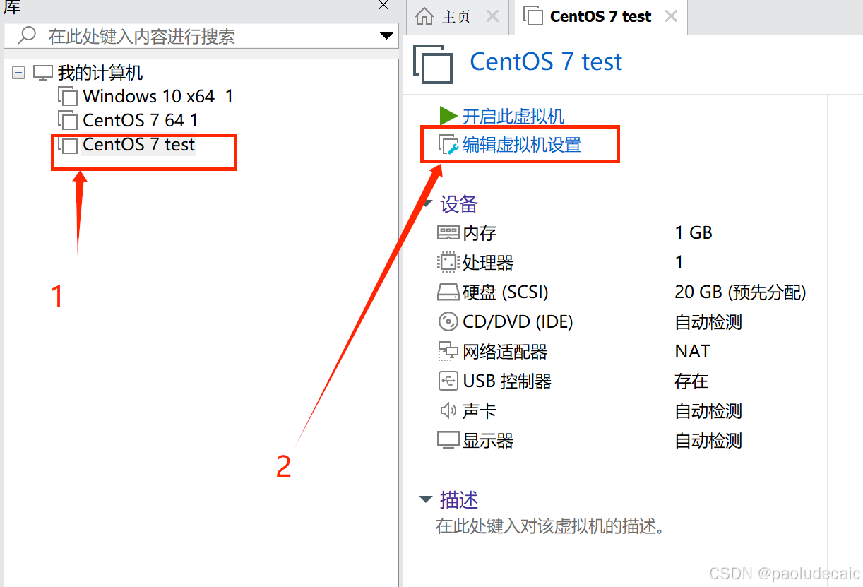 选择虚拟机 选择刚才创建的虚拟机,点击 编辑虚拟机设置