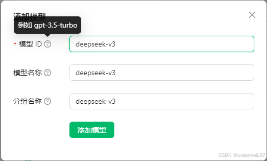 依次添加 deepseek-r1 和 deepseek-v3 这两个模型,请注意名称不能填错,建议直接复制。