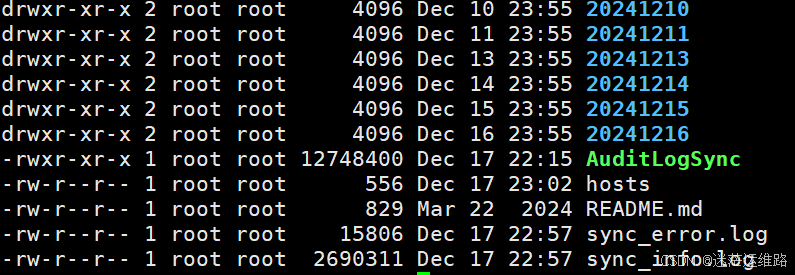 4、审计日志归档目录位置/data/AuditLogSync/xx(年月日命名的目录)