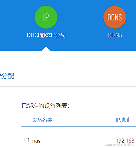 打开路由器管理页面,为这个服务器添加一个静态ip,方便之后内网直接访问,也省去了每次查ip重新链接的麻烦,比较稳定。以小米路由为例,在高级设置-DHCP静态IP分配中,可以固定这个设备的IP地址。