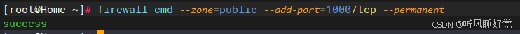 配置命令:firewall-cmd –zone=public –add-port=1000/tcp –permanent