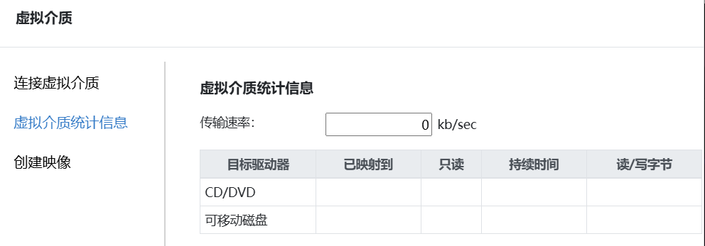 之后重启服务器,服务器将读取镜像文件重装系统,快慢取决于文件传输速率,需耐心等待,可以从虚拟介质选项中的虚拟介质统计信息来监控传输过程。