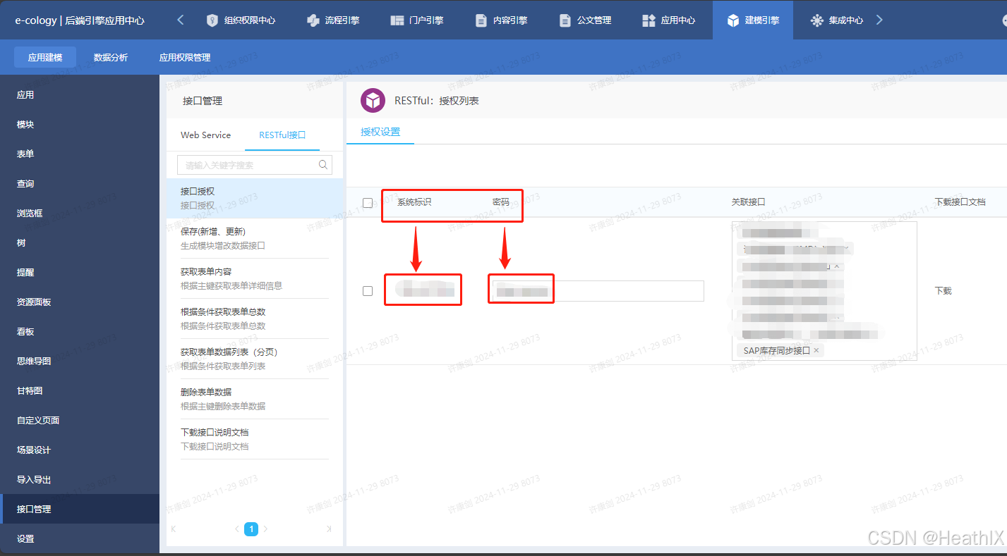 - 建模引擎操作在接口管理处新增一个RESTful接口,如图1.1所示,给新建的RESTful接口授权,如图1.2所示。