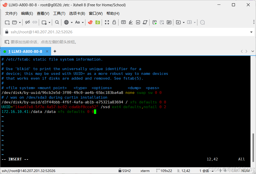 # 挂载NFS共享目录,IP为服务器的IP,可以ifconfig查询
