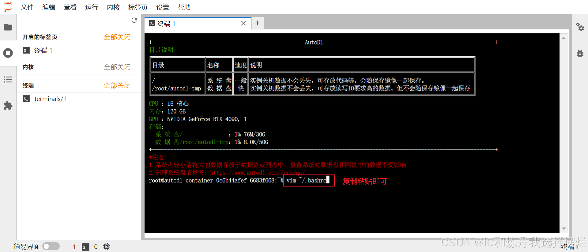 (1)点击jupyter lab,然后点击终端,进入如下界面