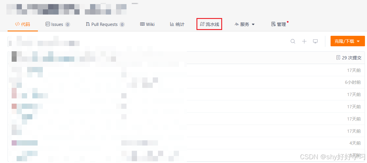 1. 进入到个人项目中点击上方流水线(必须得是本人的项目,共同参与的不行!)