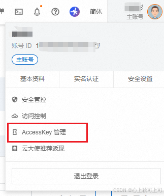 - 获取accessKeyId和accessKeySecret 如下图所示