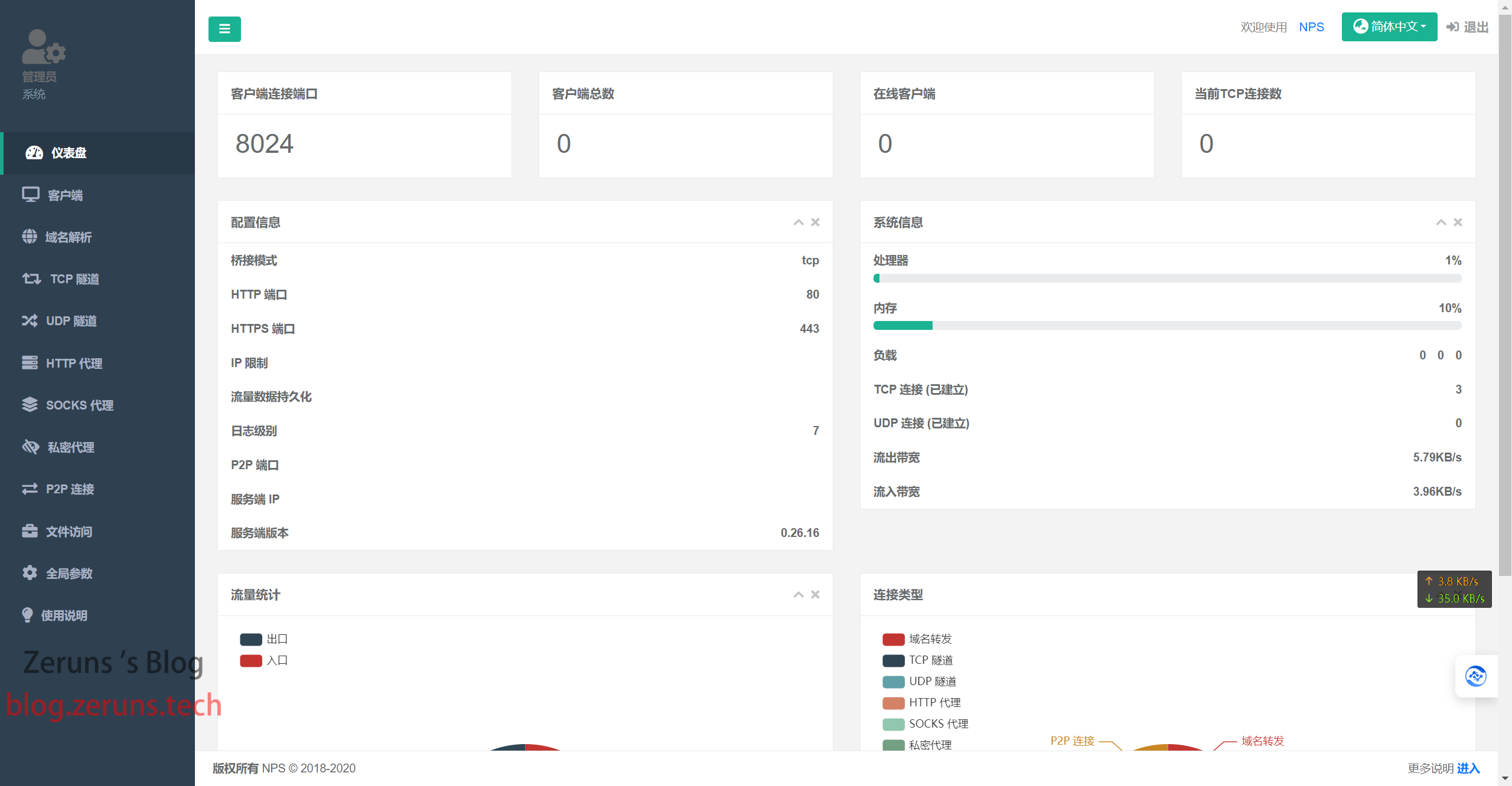 nps是一款轻量级、高性能、功能强大的内网穿透代理服务器。目前支持TCP、UDP流量转发,可支持任何tcp、udp上层协议(访问内网网站、本地支付接口调试、ssh访问、远程桌面,内网dns解析、游戏私服、我的世界服务器 等等……),此外还支持内网http代理、内网socks5代理、p2p等,同时支持snappy压缩、站点保护、加密传输、多路复用、header修改等。支持web图形化管理,集成多用户模式。