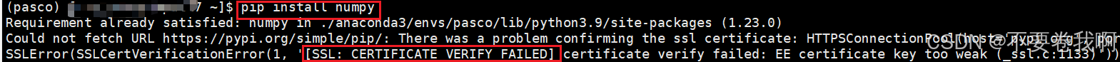 问题二:虽然在目标主机上配置了一个conda环境,依然是因为没网的问题无法pip任何包