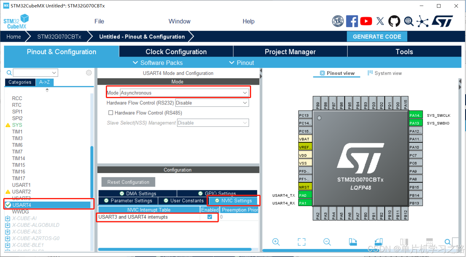 (3)配置串口,此处我用的是串口4,其他串口也是一样的