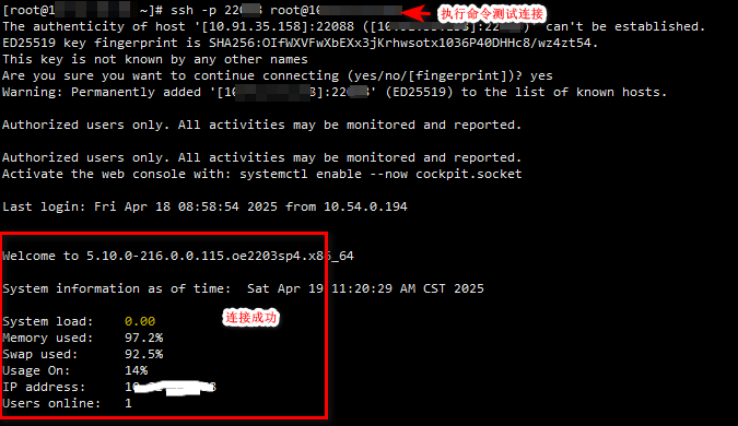 是SSH隧道建立成功的提示,说明公钥没有放置正确,参考步骤二 2 源服务器设置秘钥
