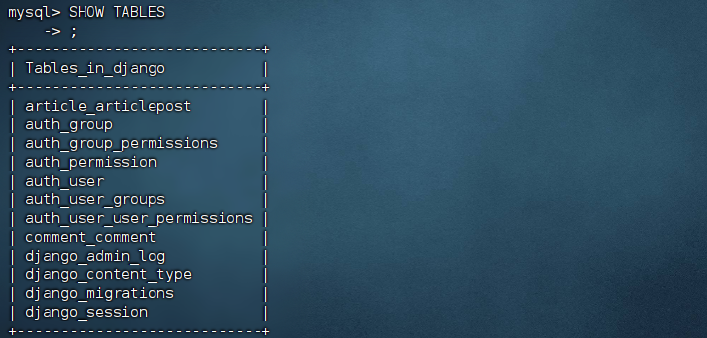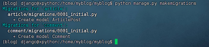 在命令行中输入命令让 Django知道我们自定义模型有一些变更,并根据我们自定义app的模型生成创建数据表的脚本:
