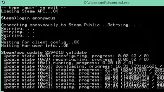 steamcmd +login anonymous +app_update 2394010 validate +quit