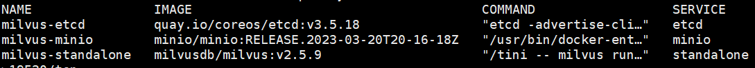 如果 Milvus 正常运行,你会看到类似以下的输出