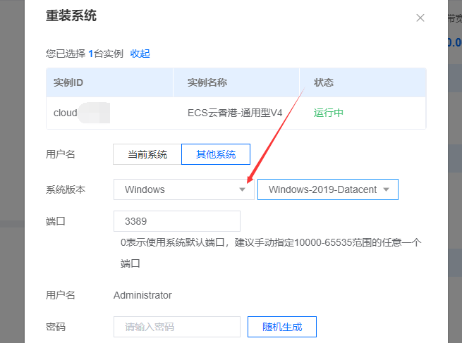 开通云服务器后,点击安装Windows系统(也可在开通云服务器时,选择安装Windows系统)