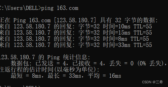 ping 163.com