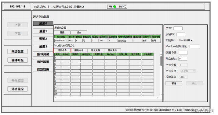 2. 从站ID :该通道所连接的从站节点号,范围:0~255。