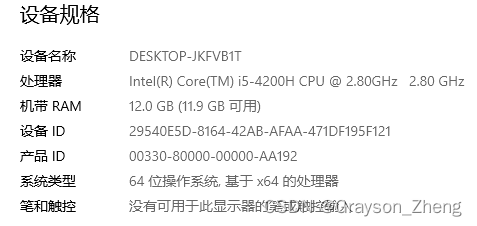 综合以上配置要求,CPU 选择上至少要四核 2 GHz 以上的处理器,运行内存至少 8 GB 以上(4 GB 给虚拟机的系统用了,剩下的还得用于 Windows 系统和其他软件的开销)。 所以请各位小伙伴根据以上的各个要求选择电脑,本次我使用的是 2014 年华硕生产的笔记本电脑 A550JK4200,配置如下图所示,符合所有要求(这个是十年前的配置了,放到现在可以说是相当的拉跨了),也是我目前现有的电脑中能找到的配置最低的电脑了。